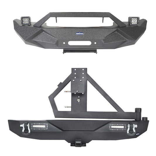 Blade Stubby Front Bumper w/ 60W Work Light Bar & Different Trail Rear Bumper w/Tire Carrier Combo(07-18 Jeep Wrangler JK JKU)-LandShaker