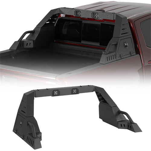 Rugged and Functional Roll Bar. The Roll Bar is a multifunctional addition to your truck. The inclusion of two powerful 25W LED spotlights not only contributes to a rugged aesthetic but also ensures enhanced visibility during night driving. Additionally, the roll bar features side storage lockable boxes, a thoughtful design for convenient storage of outdoor gear, secured by high-tech, pick-resistant locks. The adjustable design offers versatility, allowing extension options to accommodate different sizes of trucks.