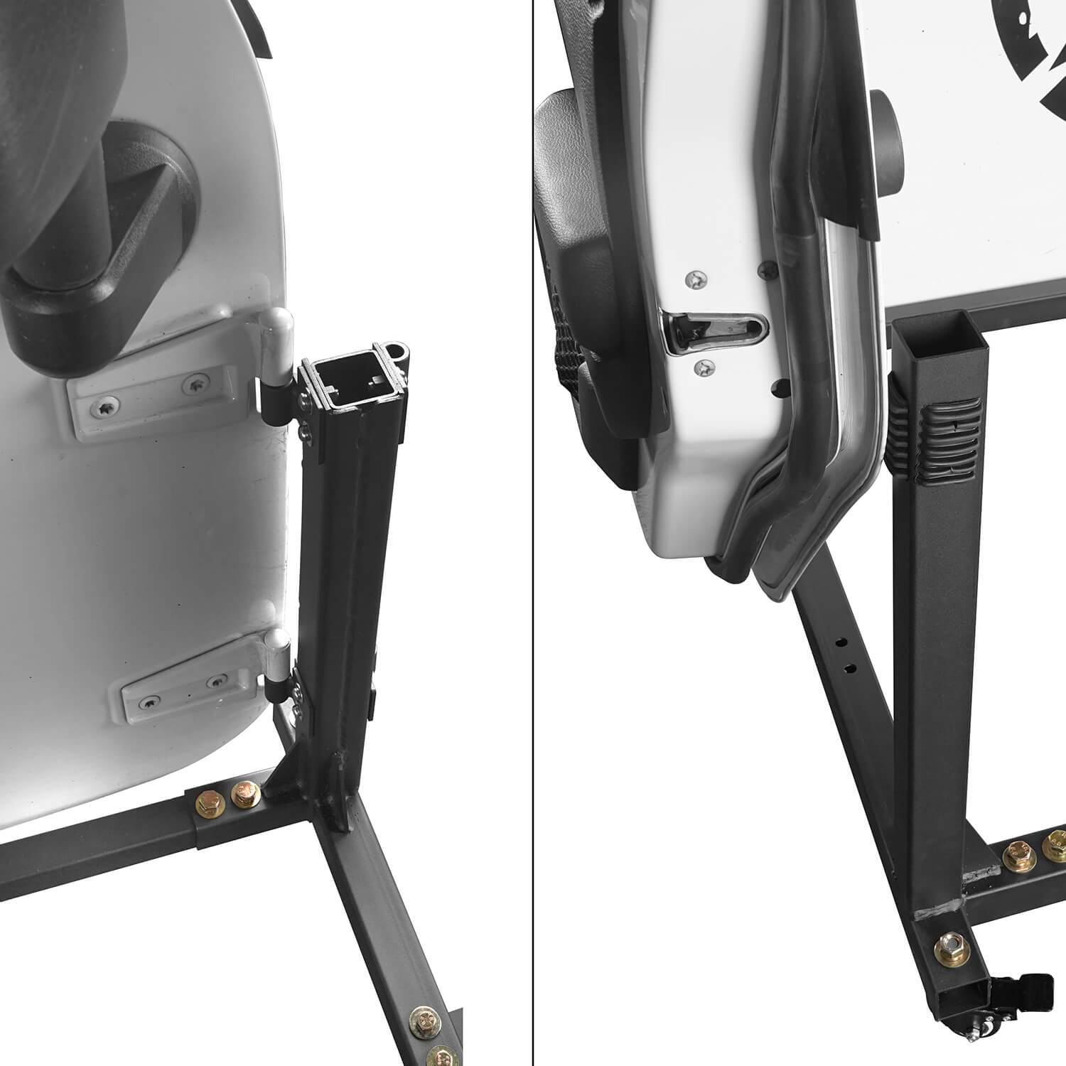 - 【Jeep Wrangler Door Storage】Tough Welded-Steel Construction; Textured Wrinkle Black Powder Coat Finish; Pulley Removable Design; Doors Fixation Available; 4 Doors Holder Can Be Used; Door Storage Movable Cart