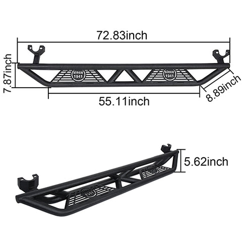 Non-Slip Finish for Safe Entry/Exit; Textured Black Powder Coat; Durable, Sleek, and Stylish; Weight: 72 Pounds; The drop off the height of side steps is 5.62 inches; With the logo "since 1941"