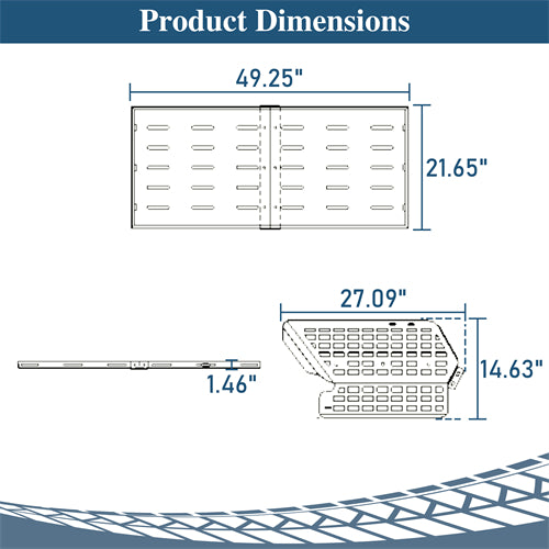 Solid Construction. Constructed from high-strength 14-gauge (5/64 inch) steel plate, this kit ensures long-lasting durability and reliable support for mounted gear. The tough black powder coat finish adds an extra layer of protection against rust, corrosion, and daily wear, making it ideal for both rugged off-road use and everyday driving. This combination of strength and finish guarantees dependable performance in harsh environments.