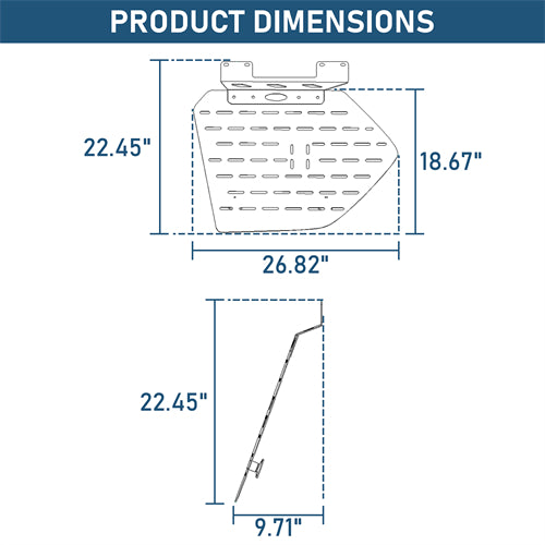 Solid Construction. The Rear Window Exterior Storage Molle Panel Kit is crafted from heavy-duty 13-gauge (3/32 in) steel plate, ensuring excellent strength and durability for long-term use in demanding conditions. It is finished with a rugged textured black powder coat that resists scratches and wear, while the premium E-coating inside provides added protection against rust and corrosion, delivering reliable performance and a lasting clean appearance.