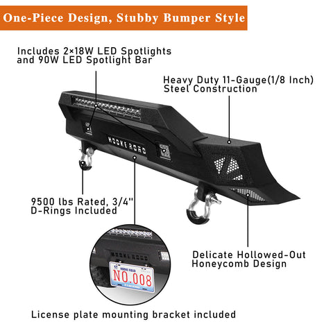 - One-Piece Design Stubby Front Bumper; Exciting Off-Road Styling. Delicate Hollowed-Out Honeycomb Design on Both Sides.